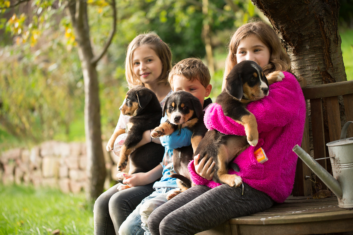 Mitten im Grünen, zwischen Obstbäumen und Wiesen züchte ich Grosse Schweizer Sennenhunde, Berner Sennenhunde und Swissydogs, die mit unseren Kindern und unseren weiteren Haustieren aufwachsen.